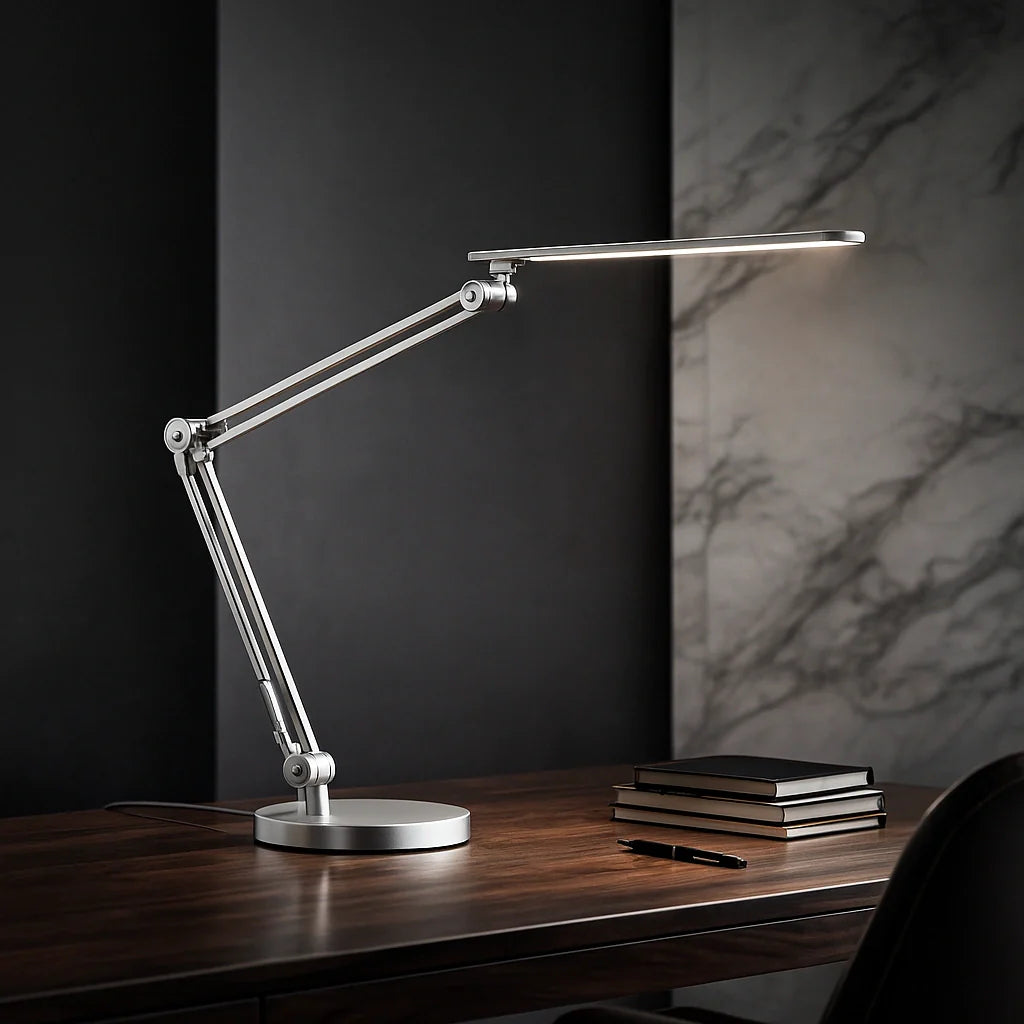 Dans une ambiance moderne, une lampe de bureau design accompagne la lecture du plan de travail ; ailleurs, une lampe de bureau vintage diffuse une lumière douce qui apaise la fin de journée. Plus précise, la lampe de bureau articulée propose un angle réglable et une luminosité ajustable grâce au variateur tactile, pour suivre les gestes sans rompre le flux.