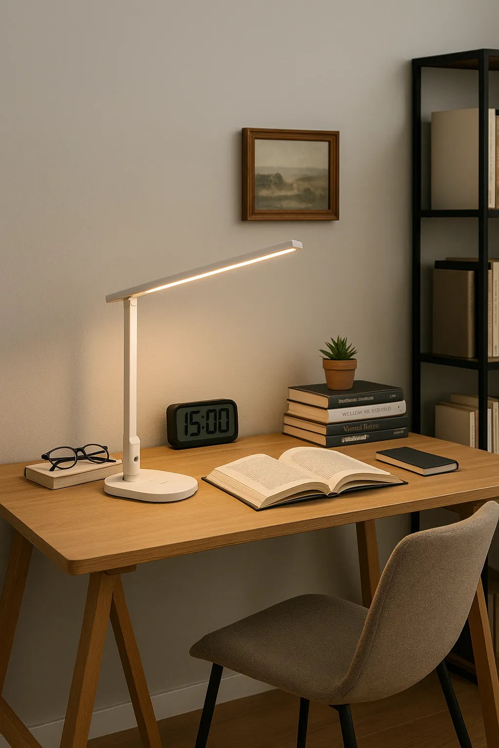 À l’échelle d’un bureau ordonné, la lumière règle le rythme. Une lampe de bureau LED, à LED basse consommation et réglée autour de 4000K, installe une clarté stable : confort oculaire, concentration préservée, moins de fatigue visuelle pendant l’éclairage de travail.