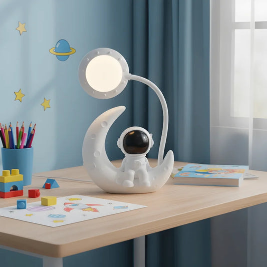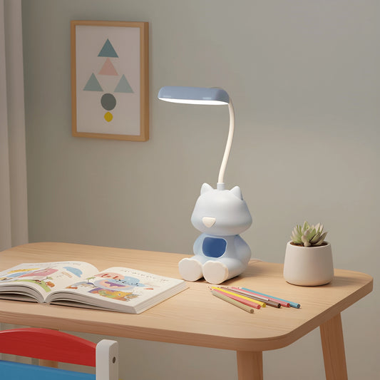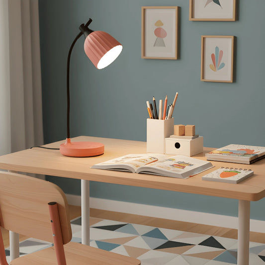 La lampe de bureau pour enfants s'installe sur un bureau d'étude, une table d'activités ou un coin lecture. Elle complète un espace de travail à la fois ludique et organisé.